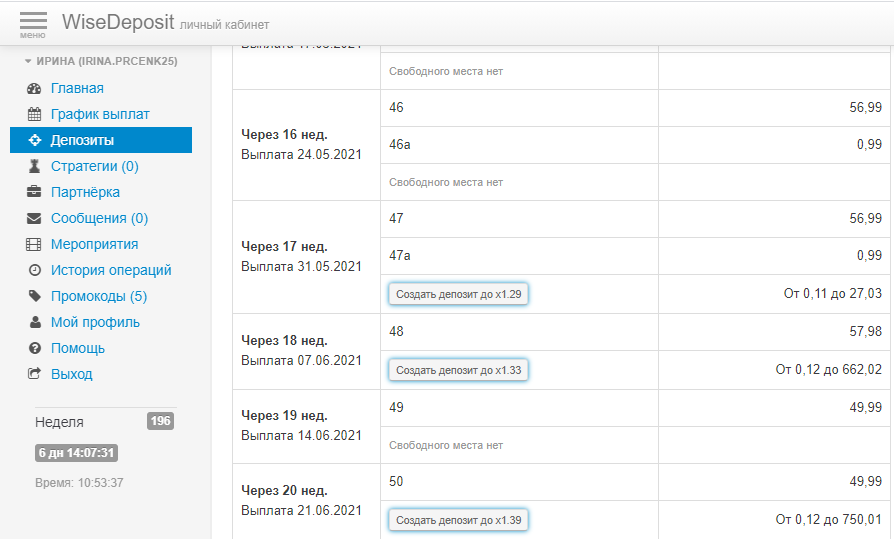 Создала очередной депозит на 20 неделю
