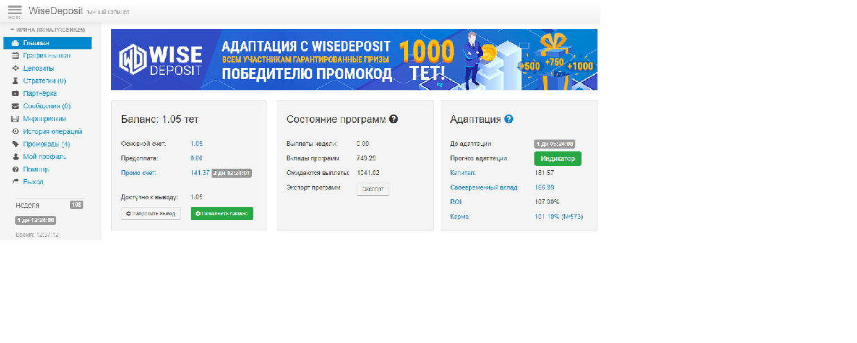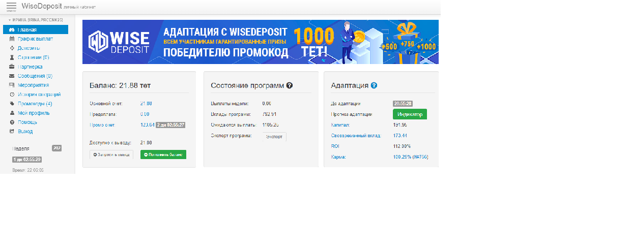 Re: WiseDeposit: 200% дохода! Бонус блога: 20% Страховка 100%