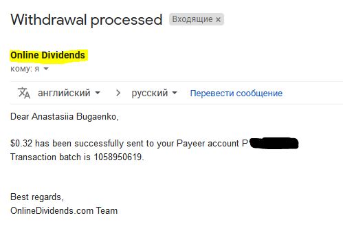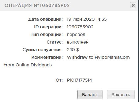 Комментарий: Withdraw to HyipoManiaCom from Online Dividends