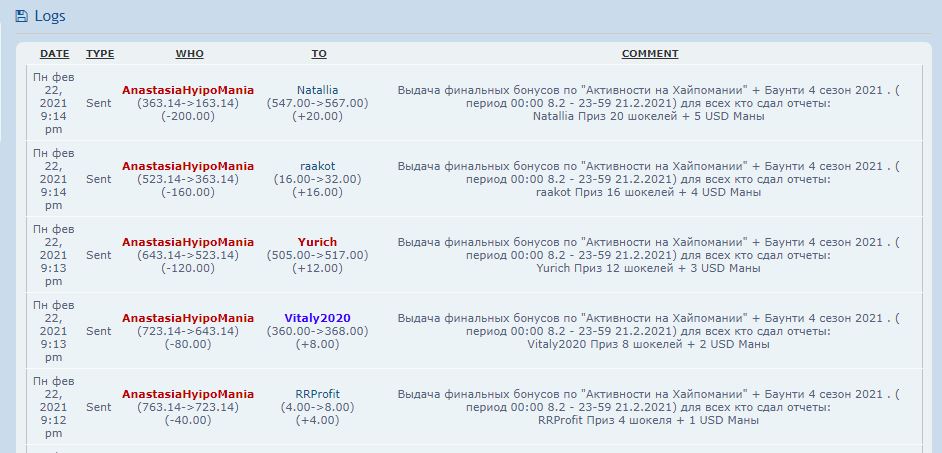 4 Место AnastasiaStrelkova , RRProfit и olnasch Призы по 2 шокеля на баланс + 0.6 USD Маны
