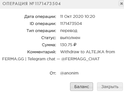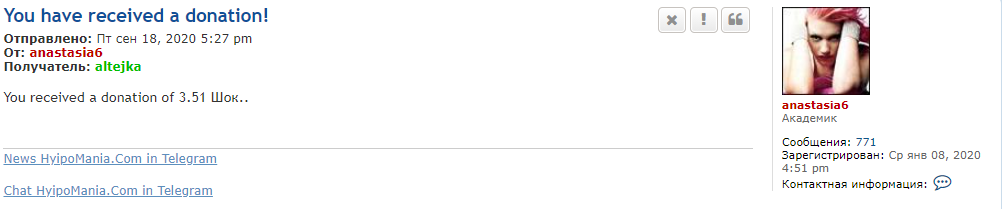 Перечисляете администратору AnastasiaHyipoMania