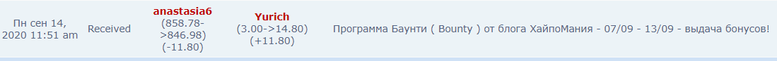 Пн окт 05, 2020 11:17 pm Received Yurich +24.50 Программа Баунти ( Bounty ) от блога ХайпоМания