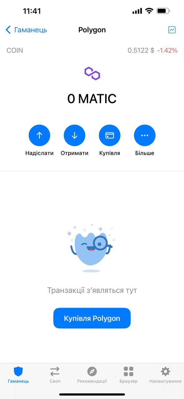 2. Устанавливаем там токен Matic на блокчейне Polygon