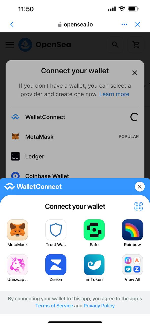 5. Открываем через браузер кошелька маркетплейс Opensea