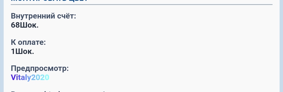 Каждая буква вашего ника будет с плавным переходом цветовых оттенков, если выбраны различные цвета.