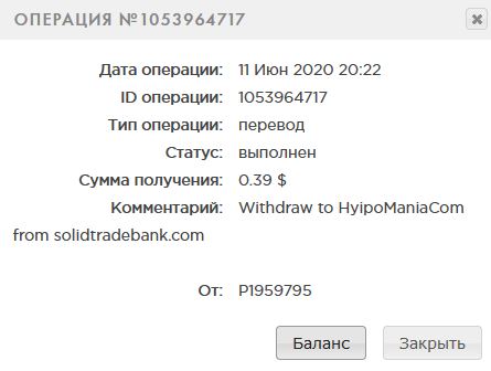Бонус ХайпоМании - 200% от реферальной программы проекта на баланс в форуме . Для получения бонуса нужно зарегистрироваться по нашей реферальной ссылке: https://solidtradebank.com//?ref=HyipoManiaCom