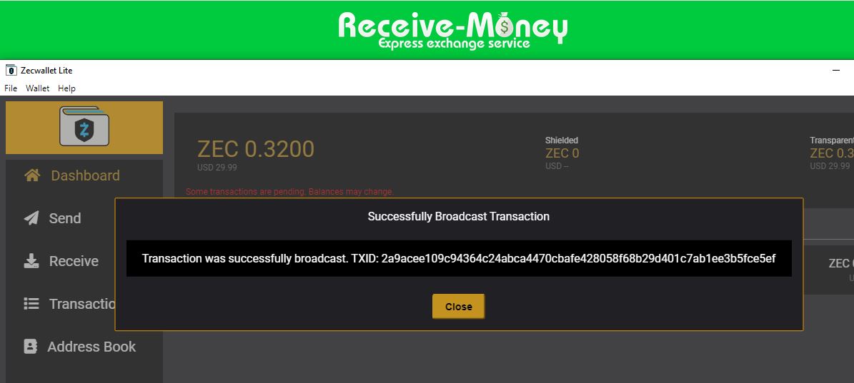 Все, теперь мы можем получать и отправлять криптовалюту Zcash ( ZEC )!