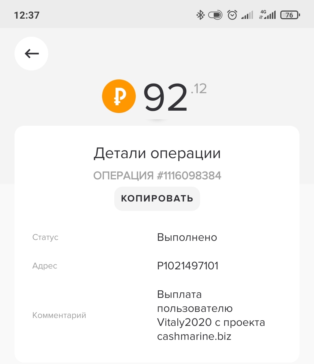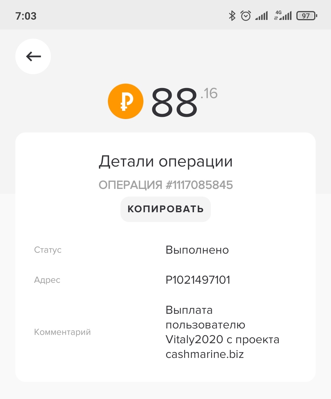 Comment: Amount: 10.00 RUB Выплата с проекта cashmarine.biz