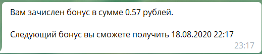 Второй бонус ежедневно через телеграмм-бот - очень удобно и приятно!