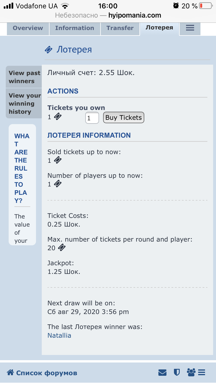 Re: Ежедневная лотерея с большими денежными призами от ХайпоМании