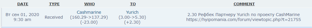 Комментарий: Выплата пользователю covboi с проекта cashmarine.biz