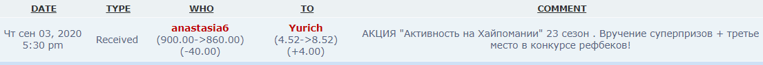 Спасибо за призовые бонусы за конкурс активности ХайпоМании! Хорошо, когда напряженная работа дает результат!