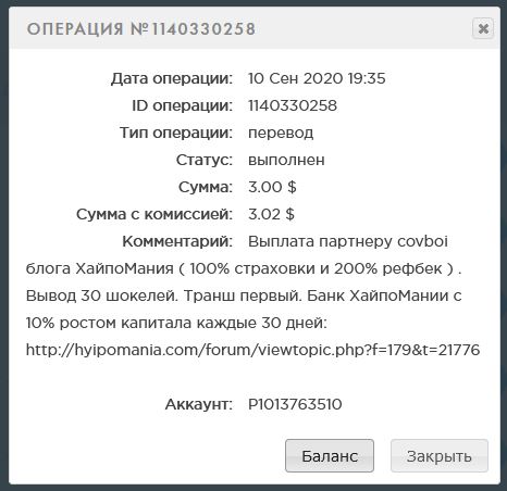 Сумма: 31.00 USD Выплата партнеру блога ХайпоМания ( 100% страховки и 200% рефбек ) Vitaly2020. Второй вывод по программе бесконечного пассивного дохода с блогом. В обороте: 310 шокелей. Капитал на 1.10 в Банке: 700 шокелей.