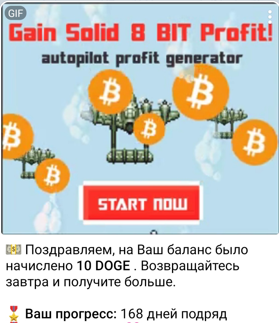 💵 Поздравляем, на Ваш баланс было начислено 10 DOGE . Возвращайтесь завтра и получите больше.