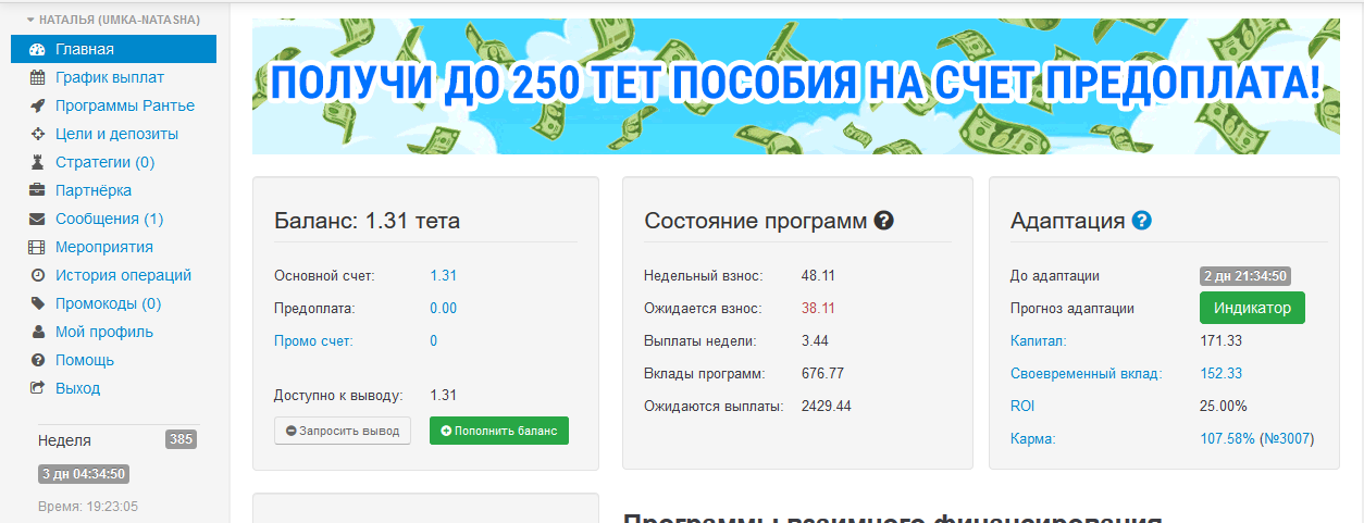 Программа компенсации потерь в других инвестиционных проектах до 1000 USD еженедельно ,