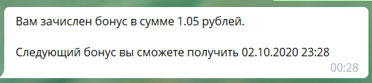 Второй бонус ежедневно через телеграмм-бот - очень удобно и приятно!