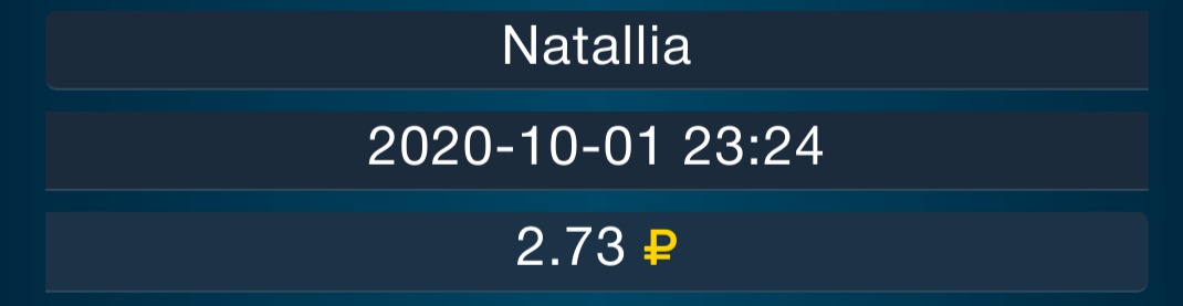 Дата: 01 Окт 2020 21:08 ID: 1161868120 Тип: перевод Статус: выполнен Сумма: 99.05