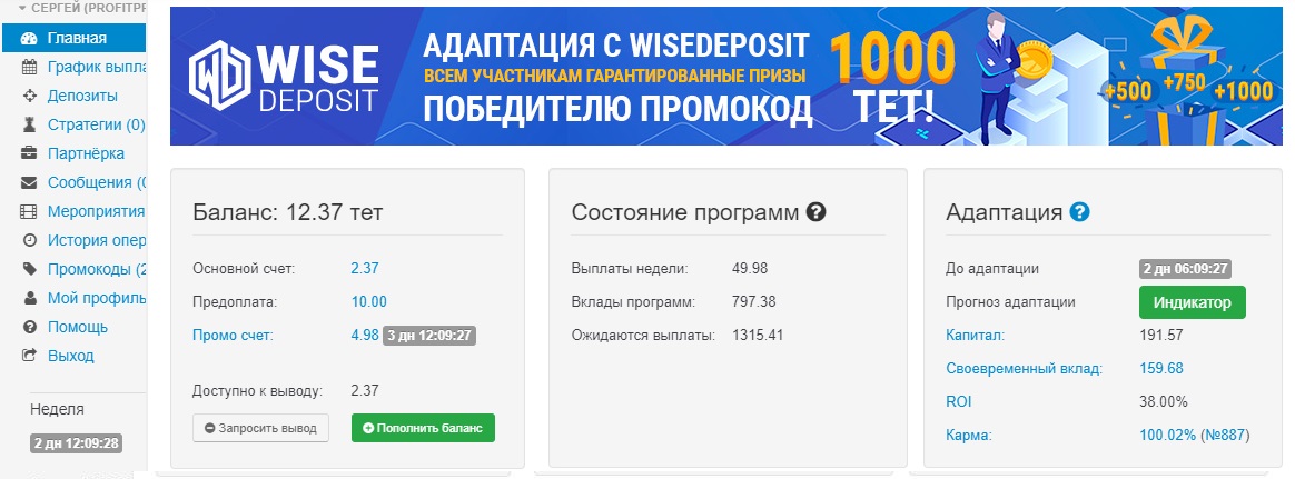 Вернуться в «Проект WiseDeposit - работа с 2017 года c доходом до 100 % за месяц + NFT»