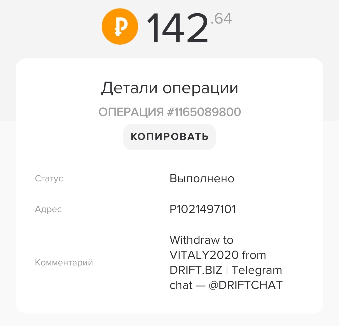 Комментарий: Withdraw from DRIFT.BIZ | Telegram chat — @DRIFTCHAT