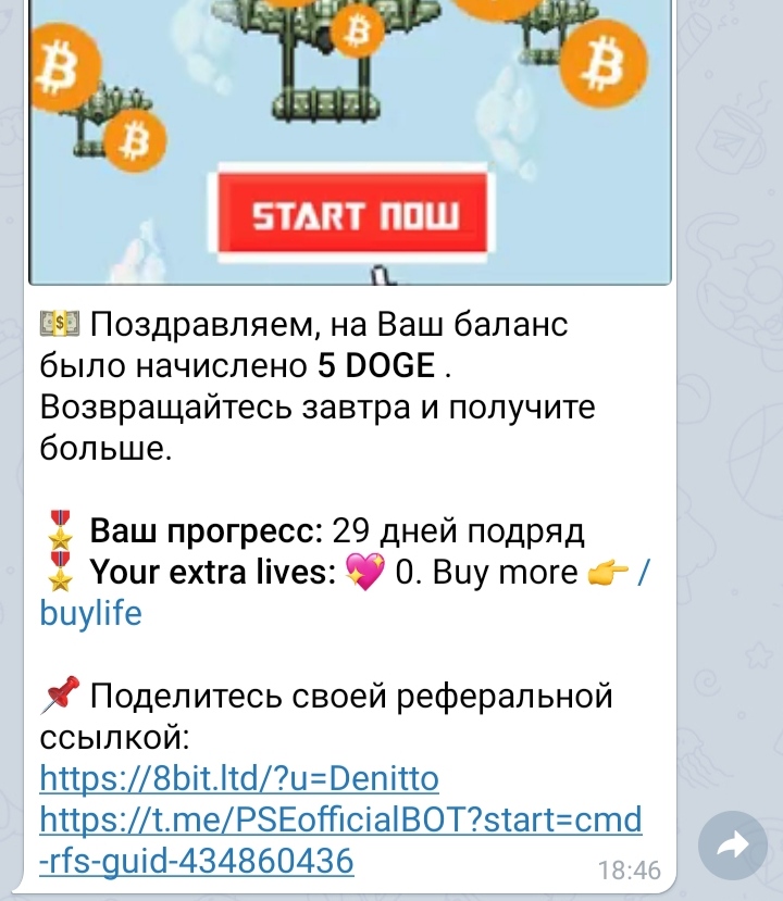 💵 Поздравляем, на Ваш баланс было начислено 1 DOGE . Возвращайтесь завтра и получите больше.