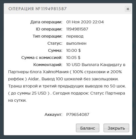 Выплата партнеру блога ХайпоМания ( 100% страховки и 200% рефбек ) Aidar. Вывод 50 шокелей. Транш первый и второй ( за 1.10.2020 ).