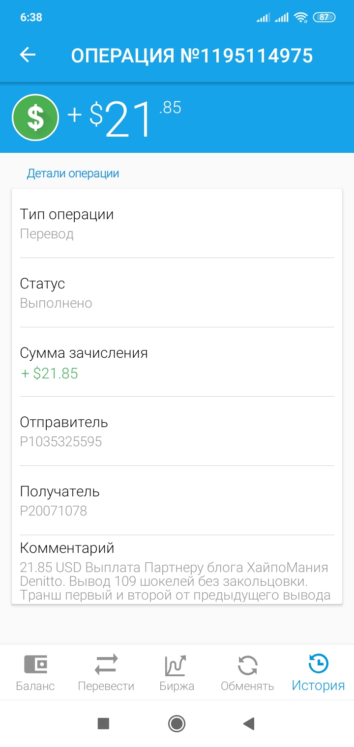 21.85 USD Выплата Партнеру блога ХайпоМания Denitto. Вывод 109 шокелей без закольцовки. Транш первый и второй от предыдущего вывода 54 шок.