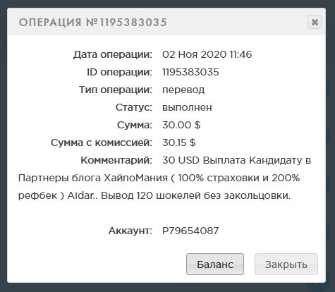 30 USD Выплата Кандидату в Партнеры блога ХайпоМания ( 100% страховки и 200% рефбек ) Aidar.. Вывод 120 шокелей без закольцовки.