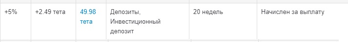Здравствуйте!! Уверенными темпами двигаюсь по пути ""Закольцовки". На этой неделе создала 2 - й депозит на 27 неделе. Закрылась очередная программа и получила выплату 50 USD. Также получила бонус за отзывы в размере 5 TET ! Всем удачи и профита!