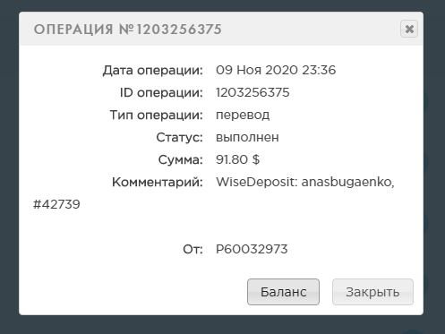Я получил очередную выплату из проекта WiseDeposit 50.5 долларов!