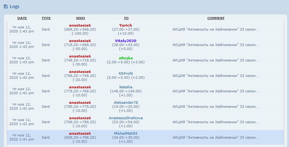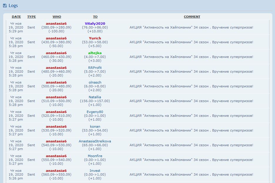 Чт ноя 12, 2020 2:43 pm Received Yurich +10.00 АКЦИЯ "Активность на Хайпомании" 33 сезон .