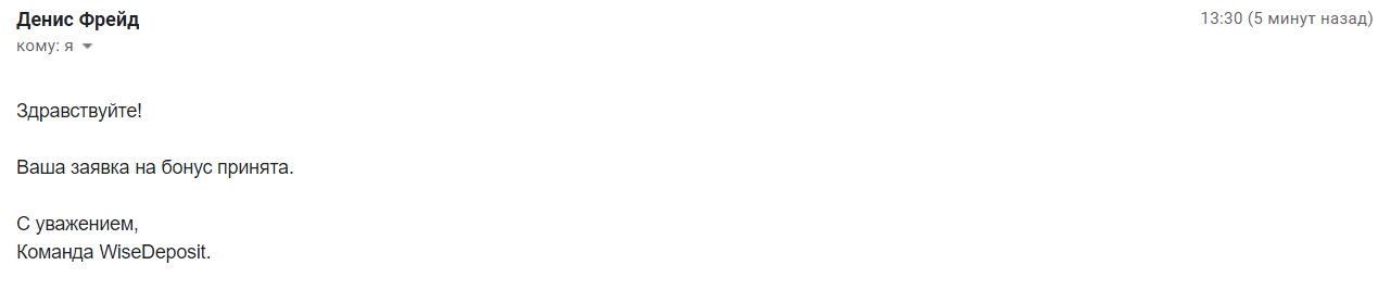 Подал заявочку на бонусы за отзывы о выводе из проекта WiseDeposit!