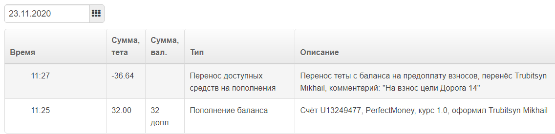 Пополнил баланс в проекте!