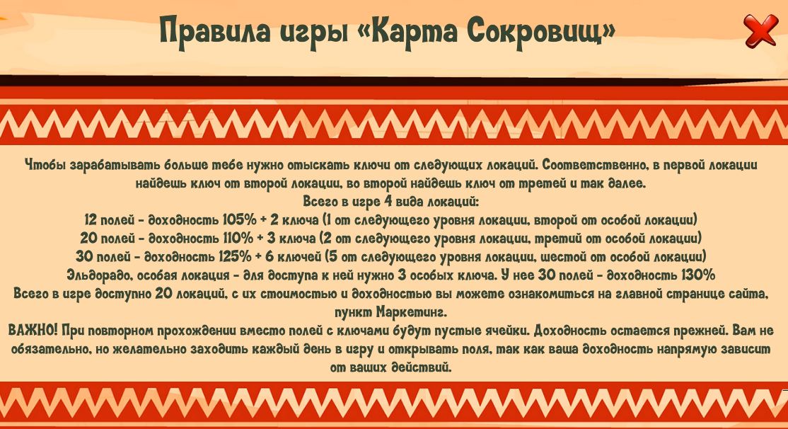 30 полей - доходность 125% + 6 ключей (5 от следующего уровня локации, шестой от особой локации)