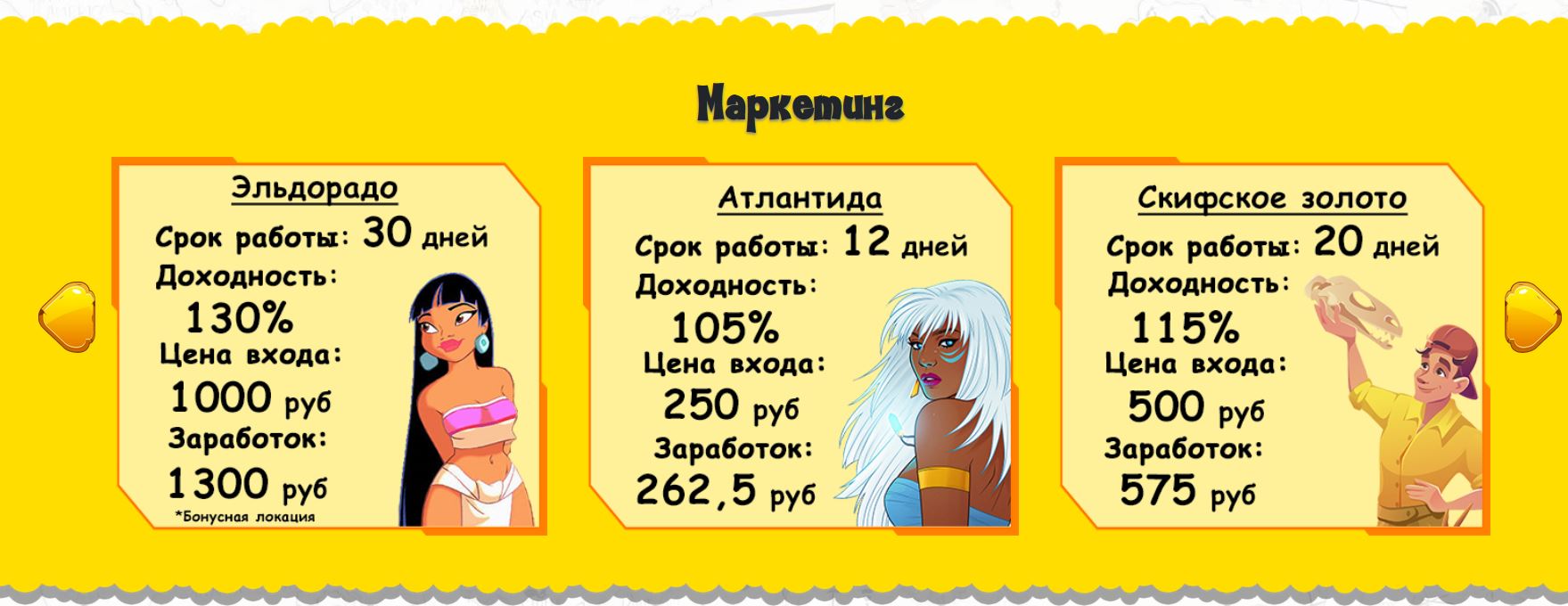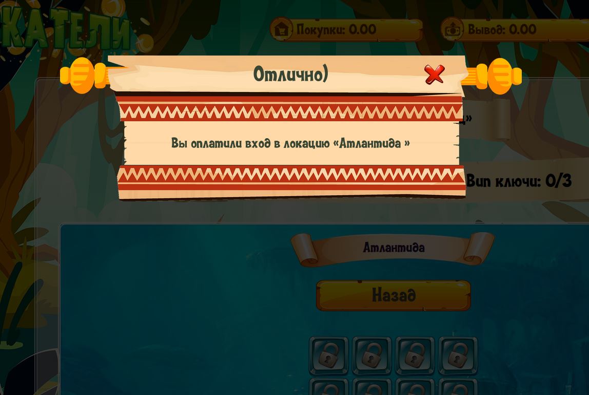 Путь юного кладоискателя начинается с локации Атлантида. Чтобы начать зарабатывать нужно оплатить вход. После оплаты открываются поля, в которых спрятаны деньги. Один раз в день у тебя есть возможность открыть одно поле. Вперед за сокровищами!