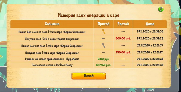 Выплата пользователю:с проекта Кладоискатели