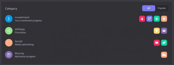 В проекте трёх уровневая партнёрская программа, позволяющая зарабатывать от каждого депозита, что сделают ваши рефералы до 3х уровней в глубину: 5% - 2% - 1%