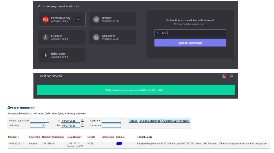 Платежные системы: PerfectMoney, BitCoin, Ethereum, LiteCoin, DogeCoin.