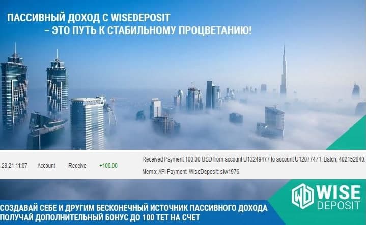 +100 usd ). Заказала – получила. К хорошему быстро привыкаешь! Хочется, мечтается и дальше так же, увеличивать свои доходы. Вдохновляют меня мои желания в проекте WiseDeposit. А правильные и добрые мечты имеют традицию осуществляться).