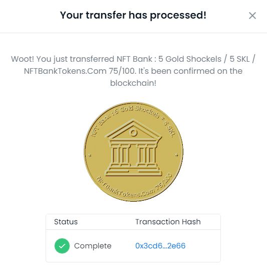 Получена серия от NFT Bank : 5 Gold Shockels / 5 SKL / NFTBankTokens.Com 50/100