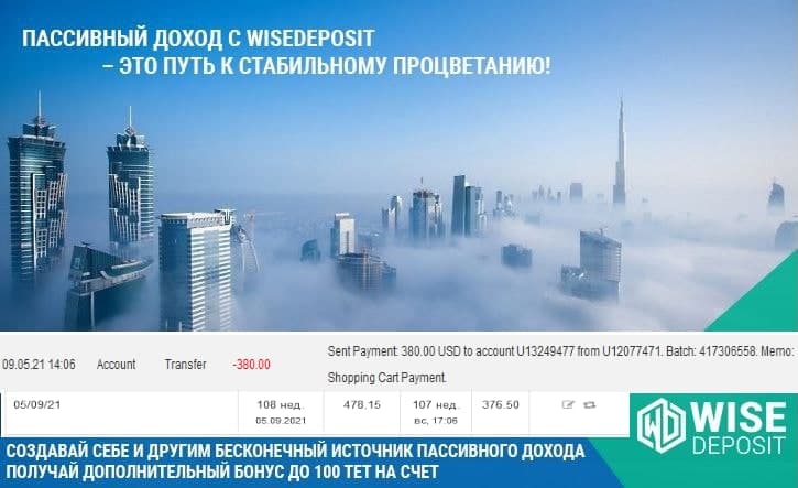 Спасибо проэкту WiseDeposit за возможность получать пассивный доход и продолжать развиваться!