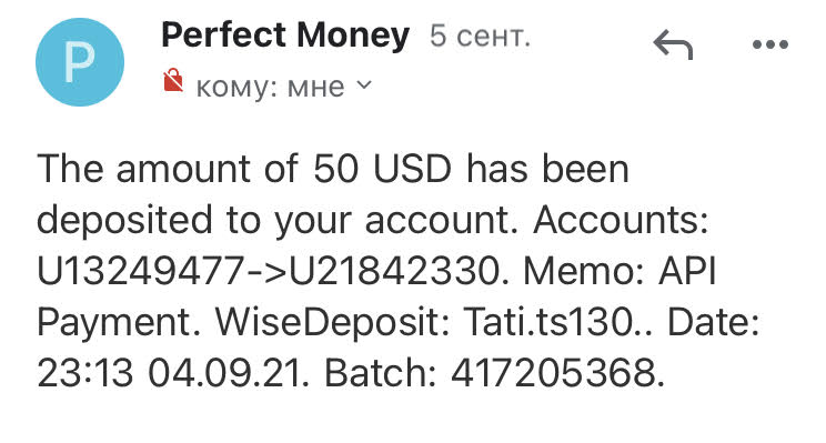 11:26 20.09.21 Receive 420388382 U13249477 +100.00 Received Payment 100.00 USD from account U13249477. Memo: API Payment. WiseDeposit: annakom875. Payment ID: 54571