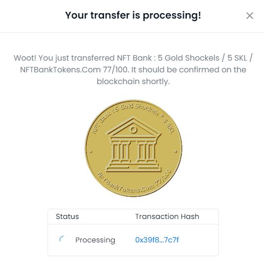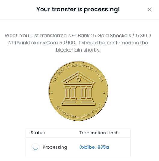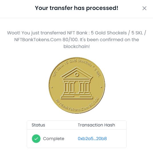NFT Bank : 5 Gold Shockels / 5 SKL / NFTBankTokens.Com 50/100