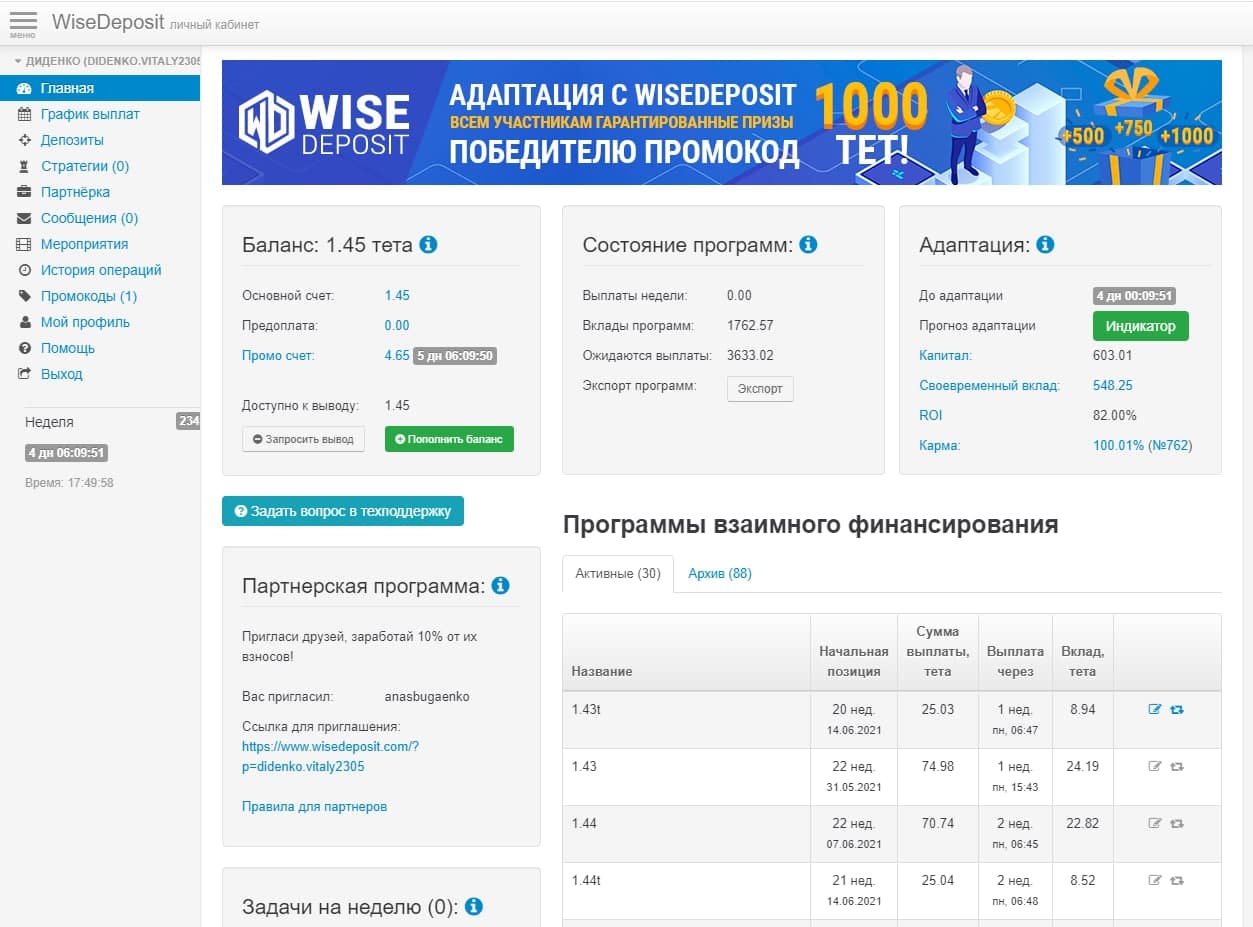 Администратор блога Divan-Invest.Ru Антон. Очень признательна за участие в акции NFT Bank+WiseDeposit, за размещение темы с проектом Вайс Депозит на блоге ну и конечно начало программы Закольцовки с проектом!