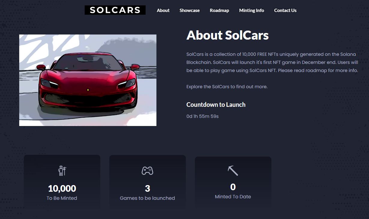 Бесплатная раздача 10000 NFT от Sol Cars на блокчейне Solana