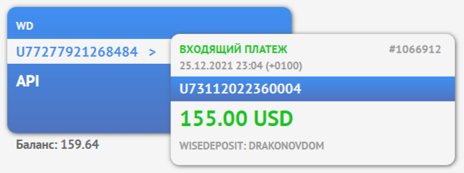Приветствую, коллеги! Получил вчера из Wisedeposit новую выплату. Позавчера поздно вечером заказал и вчера рано утром деньги поступили в кошелек! Как всегда, всё четко и согласно регламента! Следующая выплата будет уже в следующем году. Всех с Наступающим!
