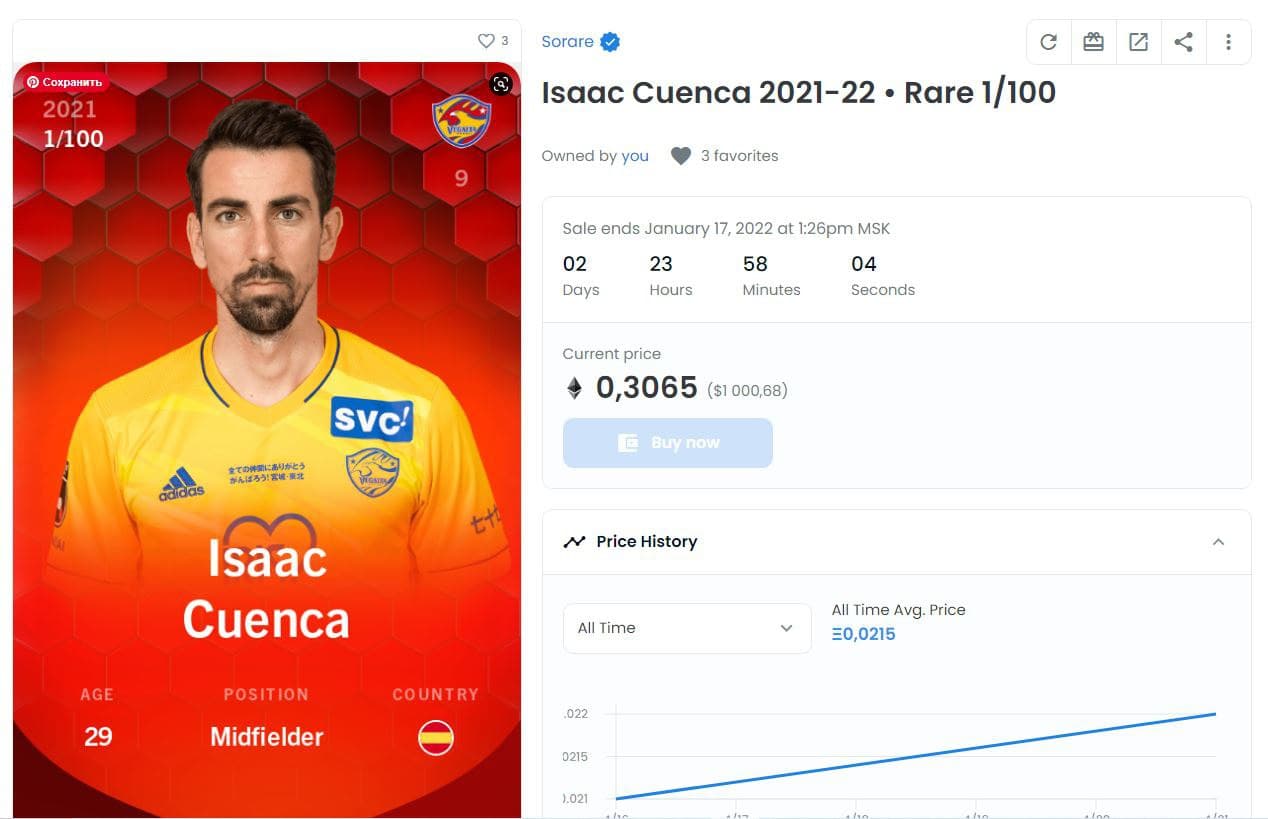 🎁 Постоянная акция: зарегистрировался по партнерской ссылке https://sorare.com/r/nfttrader001 , купил 5 любых карт на аукционе - получил 2 бонусных NFT