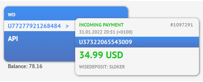 Добрый день! Сделал очередной вывод из WiseDeposit 39.99$. Лучший проект из проектов, которые я когда-либо видел. Спасибо за такое постоянство, работаем дальше!