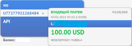 Новая выплата от Wisedeposit! Баланс моего кошелька пополнился на 101$. На этот раз деньги добрались за один час. Спасибо админам и всем участникам проекта!