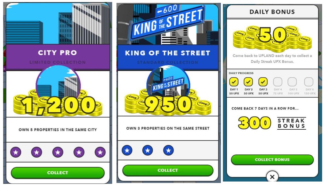 Цель этого уровня - получить дешевую необработанную недвижимость (то есть не покупать подержанную, отчеканенную недвижимость) и завершить ваши первые пары коллекций (что принесет вам еще пару тысяч UPX). Вокруг все еще скрыто множество объектов UPX ниже 2200 карту и после того, как вы получите пару коллекций, это то, что вам следует искать. Покупка 2100 собственности и продажа ее за 2399 UPX принесет вам ~ 179 UPX (что составляет около 6 месяцев заработка от самой недвижимости) .