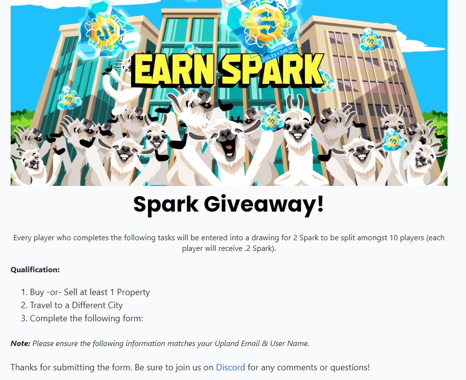 Каждый игрок, выполнивший следующие задачи, будет участвовать в розыгрыше 2 Spark, который будет разделен между 10 игроками (каждый игрок получит 0,2 Spark).